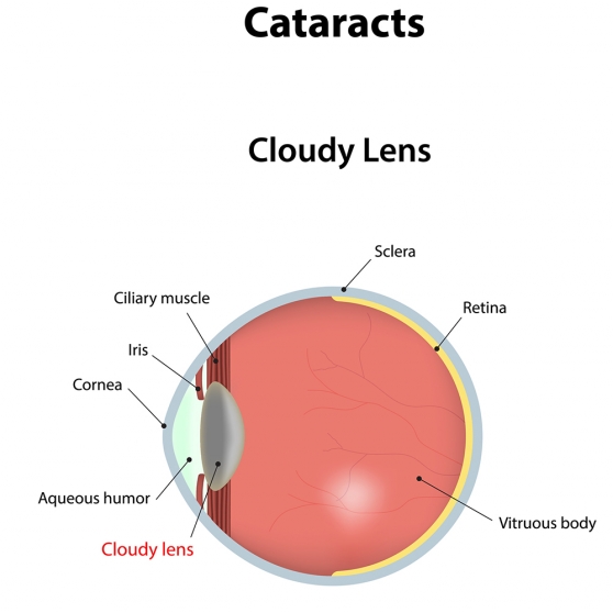 A cloudy look to the pupil may be cataracts. While cataracts are rather common among elderly patients — usually developing around age 60 — age-related cataracts can occur in people as young as 40. However, they may also be a result of uncontrolled diabetes. Steroid use may also cause cataracts. Babies may be born with cataracts if the mother has an infection while pregnant. Some signs of cataracts are sensitivity to light and glare, frequent changes in eyeglass or contact lens prescription, and clouded or blurred vision.